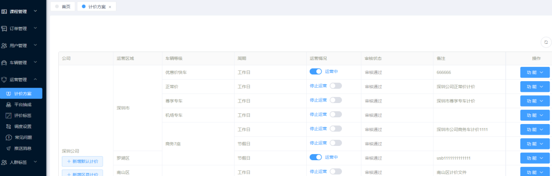 2:根據(jù)運(yùn)營城市和區(qū)域設(shè)置計(jì)價(jià)和抽成模式。